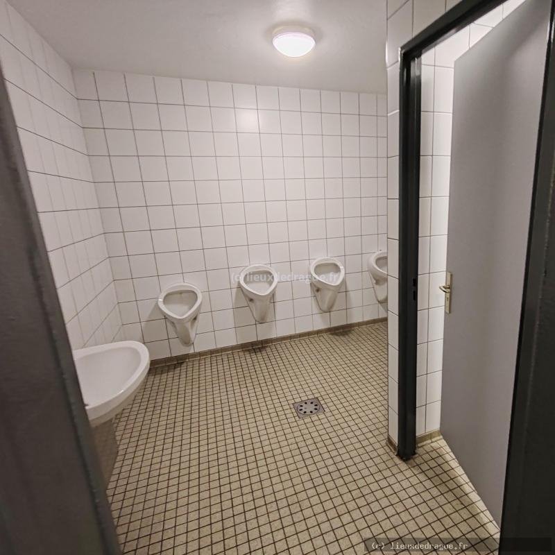 Au niveau de la salle des fêtes de Munster, prendre les escaliers qui descendent aux toilettes publiques. Côté droit pour les H. On y trouve de jolis urinoirs sans séparations pour mater des queues et une cabine. Pas de chauffage et la porte est toujours ouverte donc c'est frais en hiver.